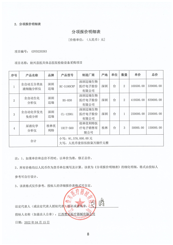 1-1 | 临床检验设备 | 始兴县医共体总医院检验设备采购项目 | 详见附件“报价明细表” | 详见附件“报价明细表” | 详见附件“报价明细表” | 详见附件“报价明细表” | 1,578,000.00 |