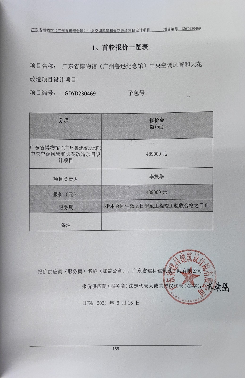 | 1 | 广东省建科建筑设计院有限公司 | 广东省博物馆(广州鲁迅纪念馆)中央空调风管和天花改造项目设计项目 | 符合磋商文件要求 | 符合磋商文件要求 | 服务期:合同生效之日起至工程竣工验收合格之日止 | 符合磋商文件要求 |