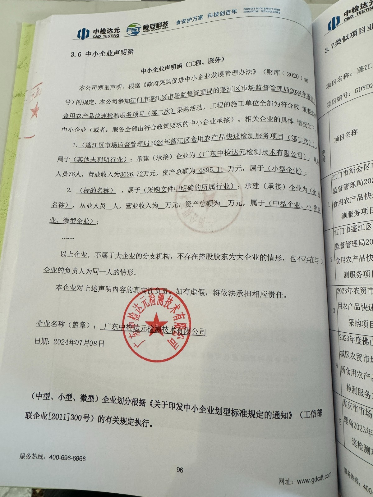 中小企业声明函-广东中检达元检测技术有限公司